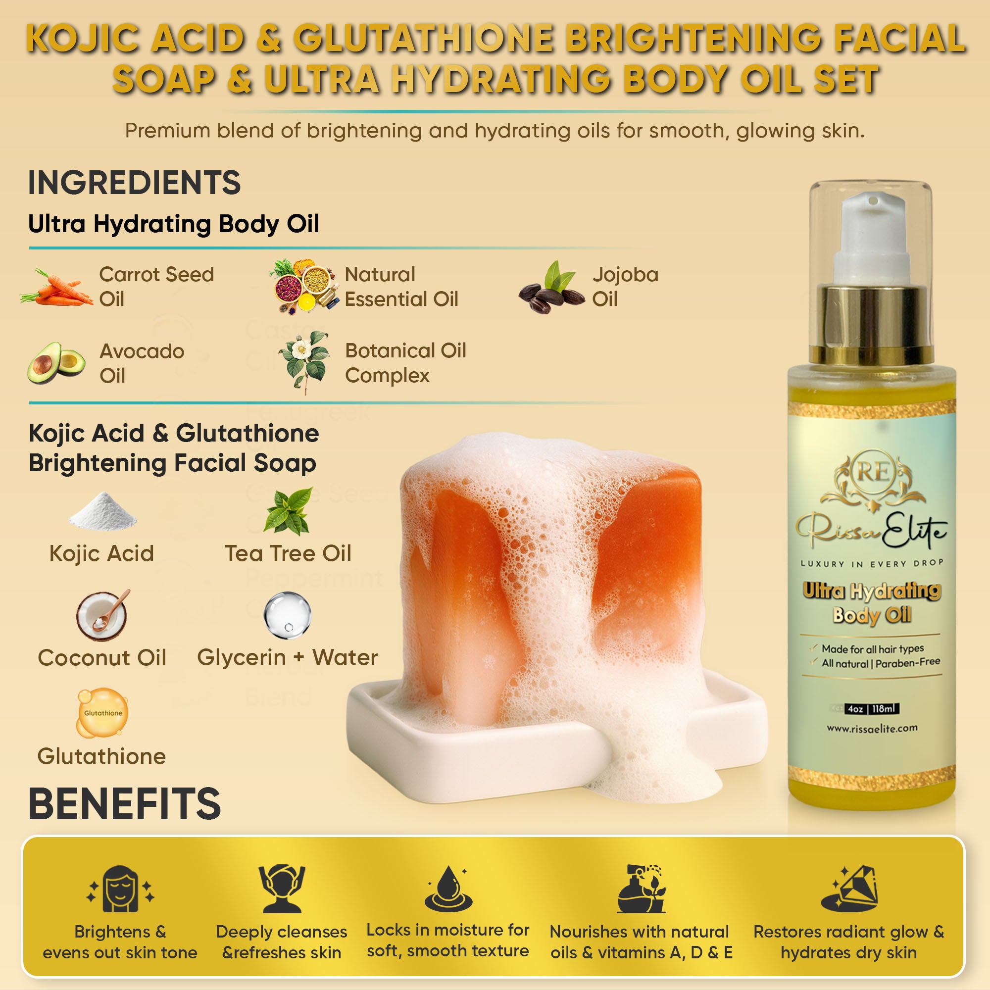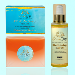 Elite Kojic Acid/Glutathione Brightening Facial Soap & Hydrating Body Oil Set
