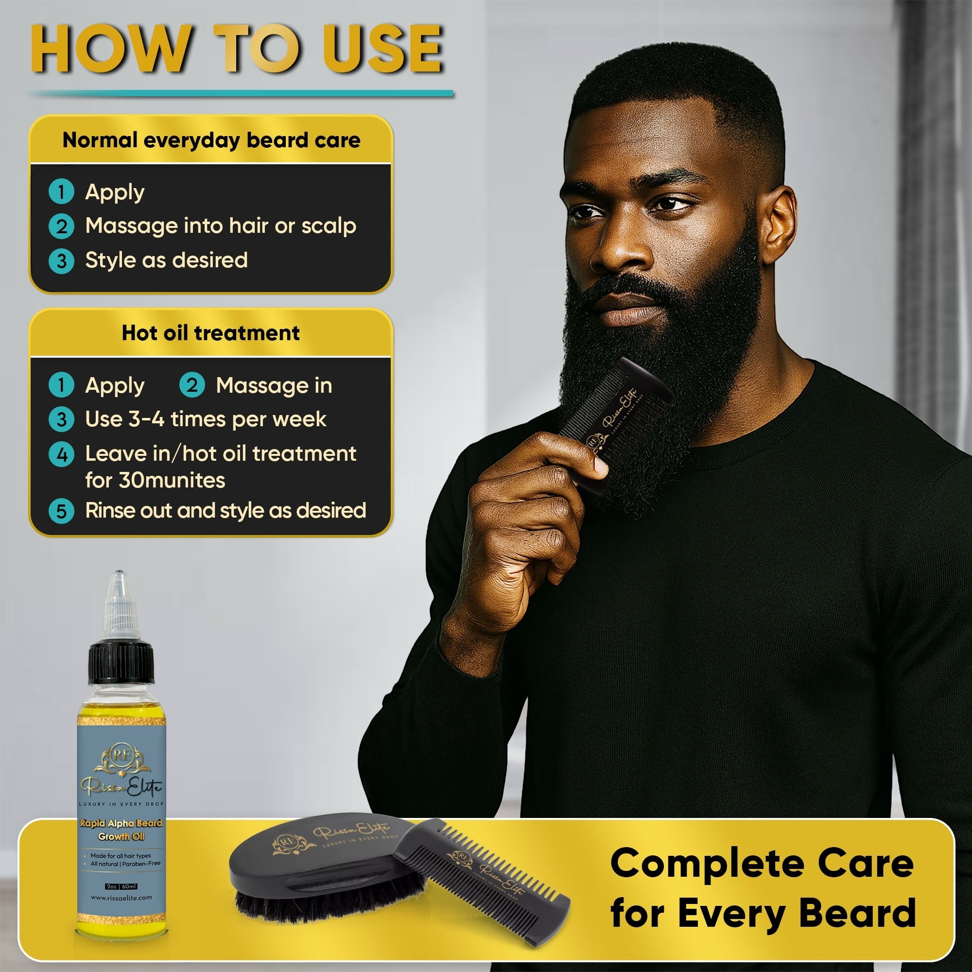 Use daily to detangle, smooth, and evenly distribute oils for a healthy, groomed beard.