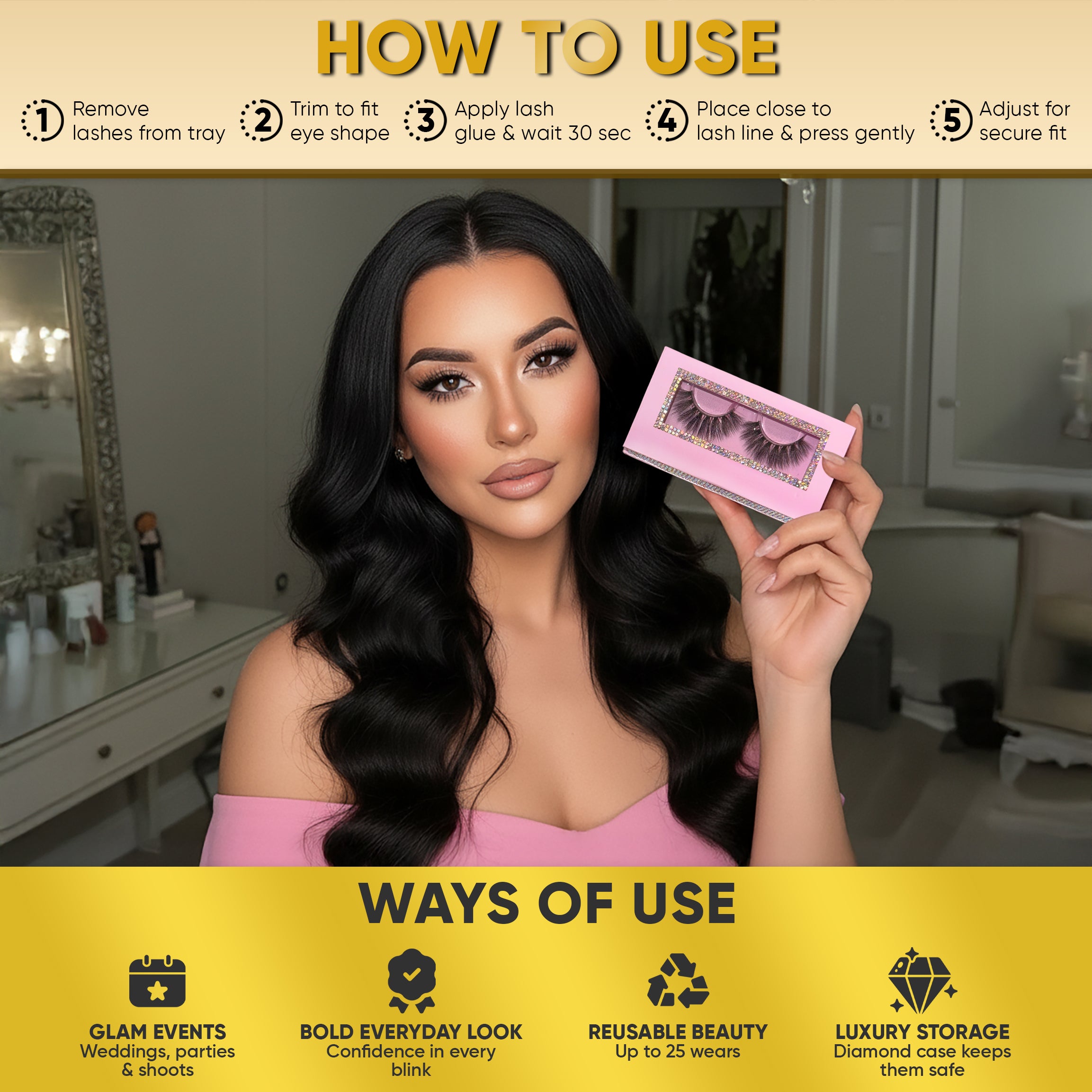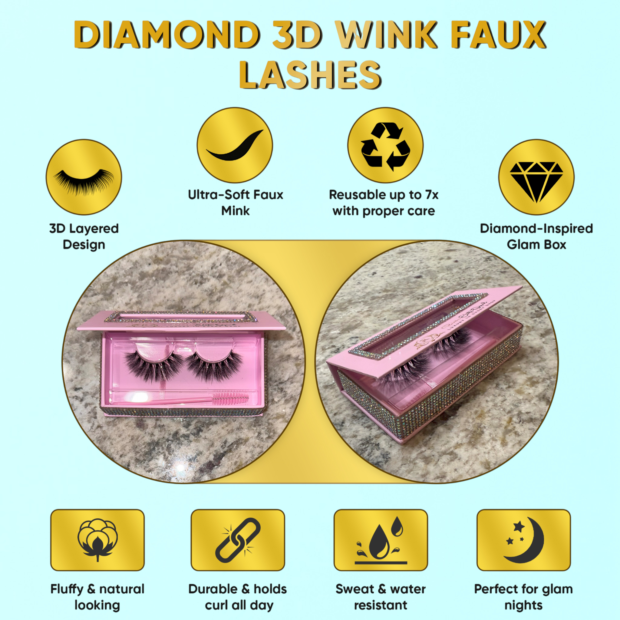 Shine in every blink with Diamond Wink bold, voluminous lashes for unstoppable glam. Made with ultra-soft faux mink, these 3D lashes deliver a fluttery, multi-layered look with diamond-like brilliance and all-day comfort.